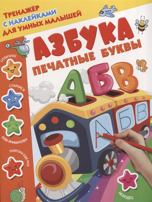 Предложите малышу обводить буквы и весёлые картинки - такие занятия формируют графические навыки, развивают речь и расширяют словарный запас. Выполняя интересные упражнения, малыш выучит алфавит, потренирует пальчики, научится писать печатные буквы. Красочные наклейки дадут возможность ребёнку оценить свои успехи.