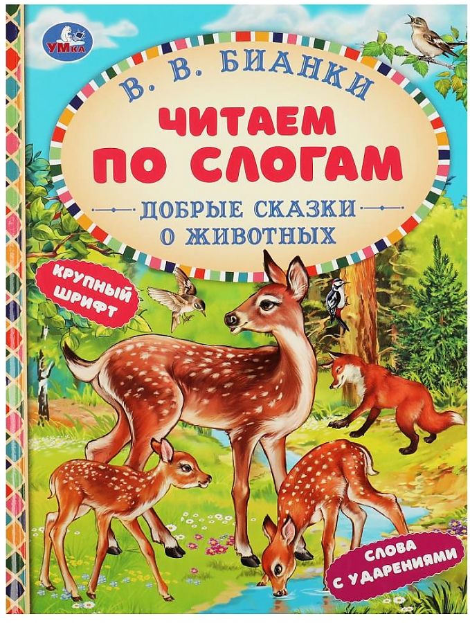 Книга "В. В. Бианки. Добрые сказки о животных" из серии "Читаем по слогам" ТМ "УМка" - отличный вариант для первого самостоятельного чтения