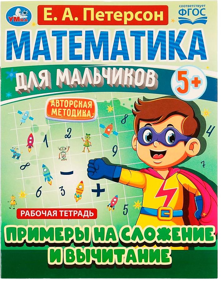 Рабочая тетрадь «Е. А. Петерсон. Примеры сложения и вычитания. 5+» из серии «Математика для мальчиков» ТМ «УМка» - отличный помощник для маленьких непосед в освоении новых знаний в области математики: