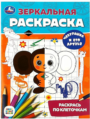 Зеркальная раскраска «Чебурашка и его друзья» ТМ «УМка» приглашает детей порисовать: