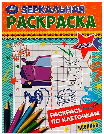 Зеркальная раскраска «Машины» ТМ «УМка» приглашает детей порисовать: