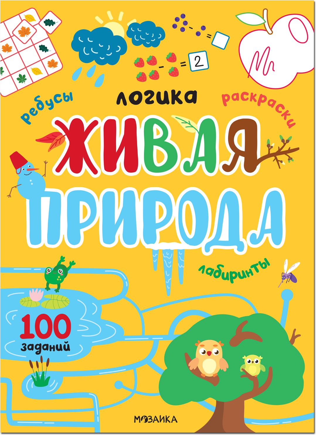 Вспомни, какие животные живут на Севере, а какие в теплых краях. Узнай, как растет бабочка. Догадайся, какое дерево сбрасывает такие интересные семена. Расскажи, как меняются времена года. Это всего лишь несколько заданий из новой толстой книжки «Живая природа» из серии «Логика. 100 заданий». Она научит находить общие признаки предметов, сравнивать и группировать их, дорисовывать, раскрашивать и считать – словом, поможет освоить все основные навыки, необходимые ребенку в возрасте 3-5 лет.
