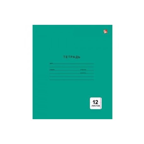 Тетрадь 12 листов, линия. Однотонная зеленая