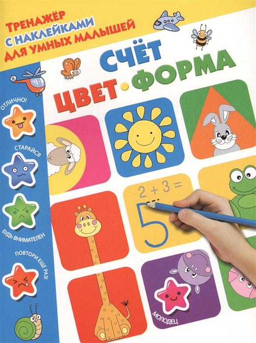О чем эта книга Книжка, которую вы держите в руках, - это развивающие прописи для знакомства с цифрами, цветами и геометрическими формами. Кому эта книга будет интересна Занимательная, полезная книжка с наклейками-оценками для малышей, которые хотят выучить цифры, различать геометрические формы, запомнить названия цветов. Каковы особенности этой книги - Занимательная, полезная книжка поможет ребенку научиться сравнивать предметы по цвету и форме. - Занимаясь по этой книжке, малыш выучит порядковый и количественный счет. - Плотная белая бумага позволит использовать ручки, карандаши и даже фломастеры, а наклейки-оценки сделают подготовку руки к письму интересной и увлекательной. - Наклейки-оценки - отличная идея, чтобы похвалить ребенка за первые успехи в освоении новых знаний. Учить - легко, учиться - интересно!