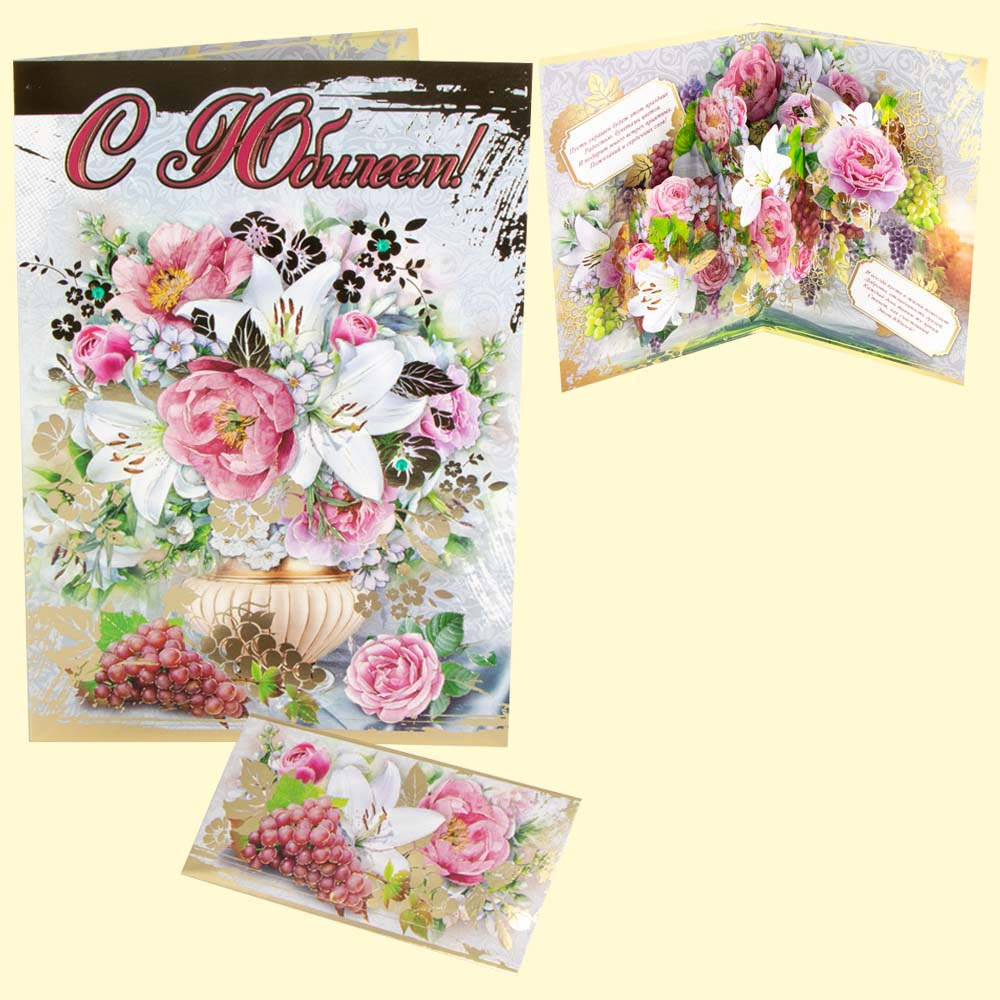 Glückwunschkarte - Zum Jubiläum! 3D Blumen, + + Strasssteine 3 St,.242 x 344 mm