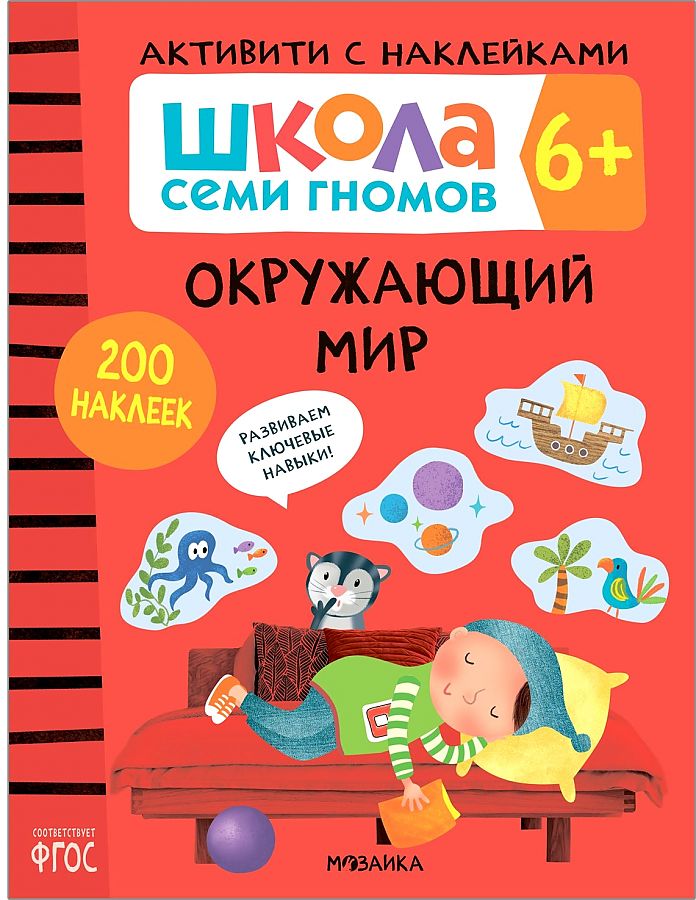 Окружающий мир 6+ (Серия Школа Семи Гномов. Активити с наклейками), книжка с наклейками Книга Окружающий мир 6+ из серии Школа Семи Гномов. Активити с наклейками предназначена для расширения кругозора и знаний об окружающем мире детей от 6 до 7 лет. Вместе с гномиком Кубиком ребенок проработает ключевые навыки, решая разнообразные задачки по четырем тематическим блокам: предметное окружение, социальное окружение, мир природы, мир растений и животных. Задания расположены по мере усложнения, что делает процесс обучения еще более полезным и доступным для ребенка. Большое количество наклеек в этой книге не даст ребенку потерять интерес к занятиям, а главное, он обязательно получит удовольствие от учебного процесса.