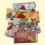 Открытка-конверт для денег 80х165 мм, различные мотивы