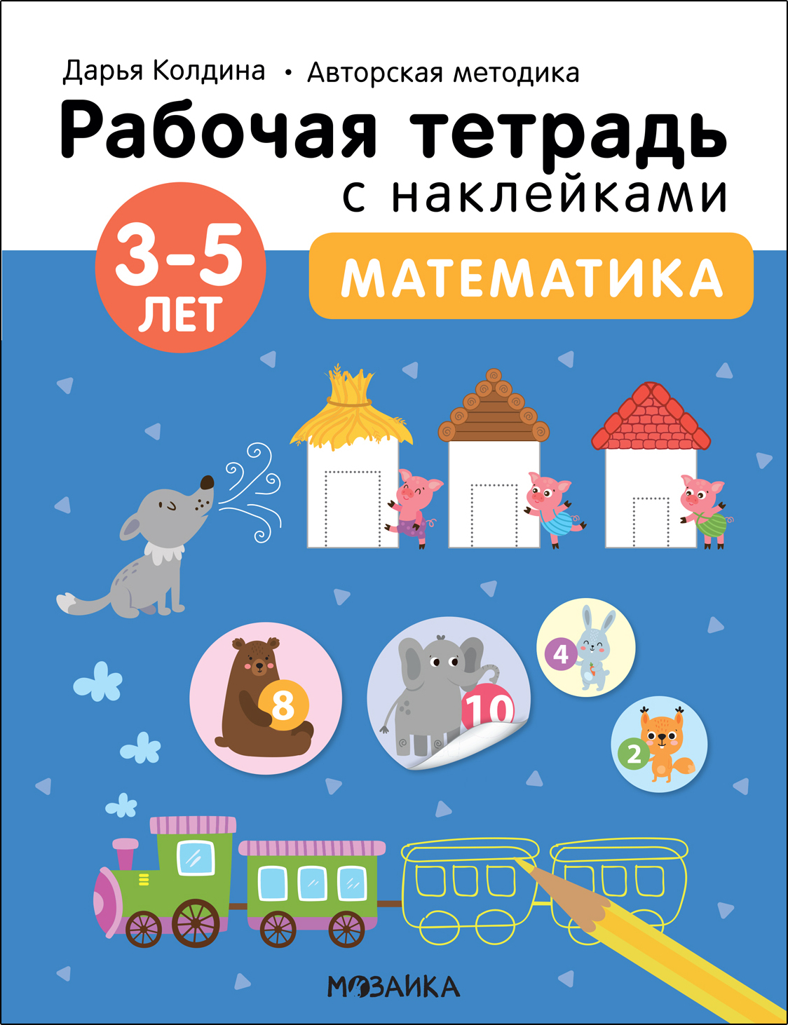 Рабочая тетрадь «Математика 3-5 лет» из серии «Рабочие тетради с наклейками. Авторская методика Дарьи Колдиной» предназначена для развития математических представлений и обучения счету детей от 3 до 5 лет.