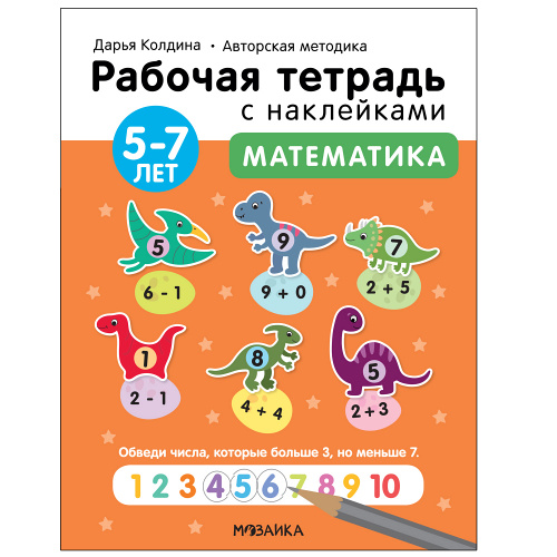 Рабочая тетрадь «Математика 5-7 лет» из серии «Рабочие тетради с наклейками. Авторская методика Дарьи Колдиной» предназначена для развития математических представлений и обучения счету детей от 5 до 7 лет.