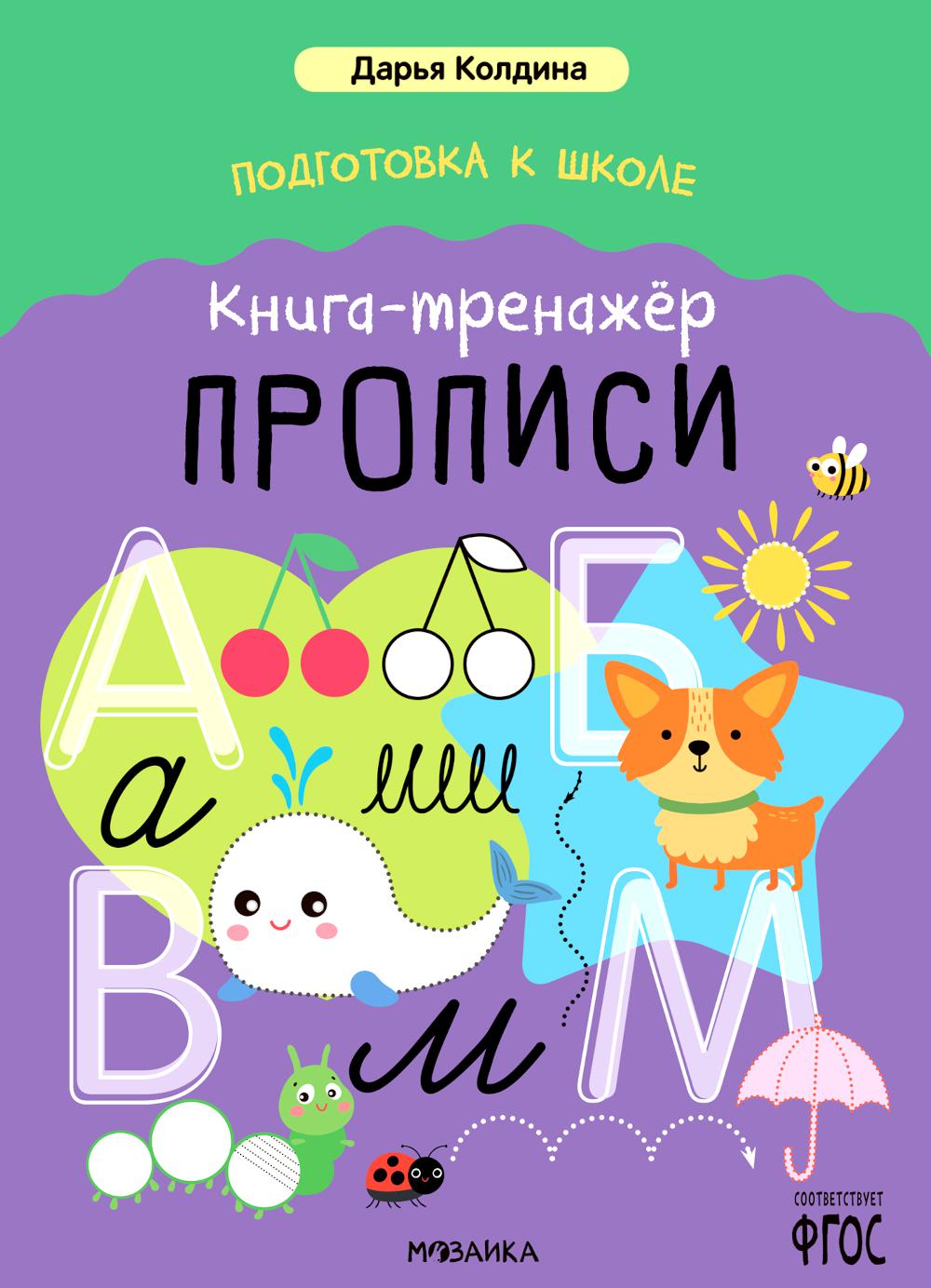 «Книга-тренажер. Прописи» из серии «Дарья Колдина. Подготовка к школе» идеально подходит, чтобы повторить с ребенком весь необходимый будущему первокласснику материал. В данной книге представлены разнообразные упражнения для подготовки руки к письму. Они не только помогают развитию мелкой моторики, но и учат детей концентрироваться, ориентироваться на листе, переключать внимание, повышают пластичность пальцев, воспитывают аккуратность.