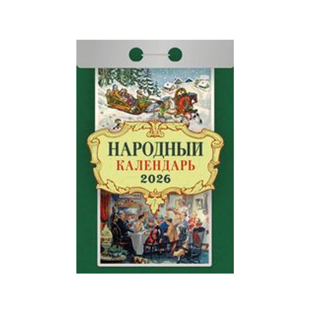Настенный отрывной календарь, формат 77х114 мм, объём блока – 378 страниц. Обложка на картоне 240 г/м2. Бумага – газетная.