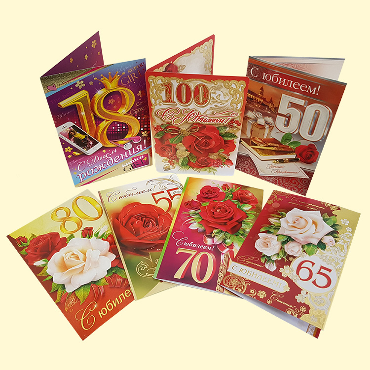 Открытка "Юбилей" 120х180 мм, различные мотивы и даты
