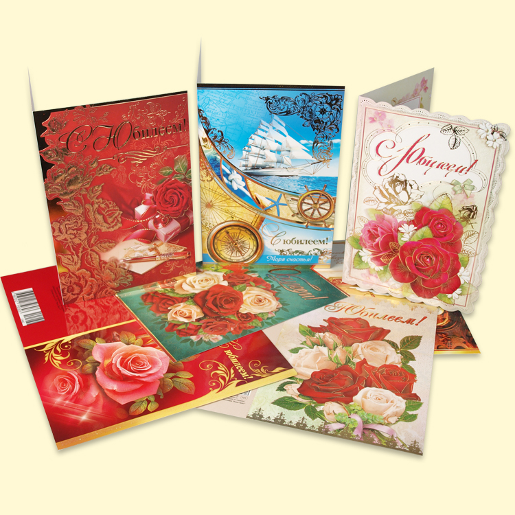 Открытка "Юбилей" 120х180 мм, различные мотивы и даты