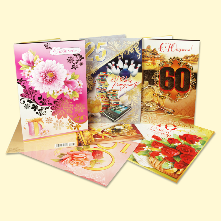 Открытка "Юбилей" 210х297 мм, различные мотивы и даты