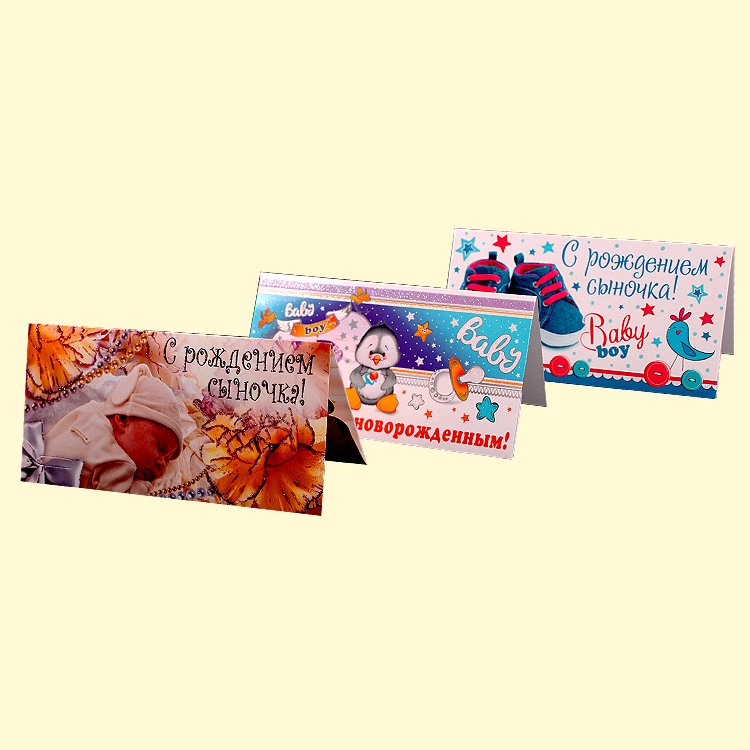 Открытка-кошелек "Для новорожденного", 165 х 85 мм, различные мотивы