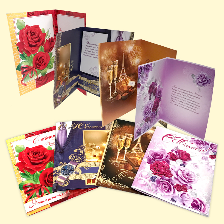 Открытка "Юбилей" 210х297 мм, различные мотивы и даты