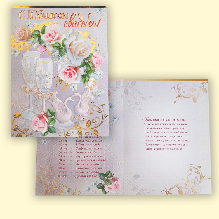 Открытка "С Юбилеем свадьбы" 205х475 мм