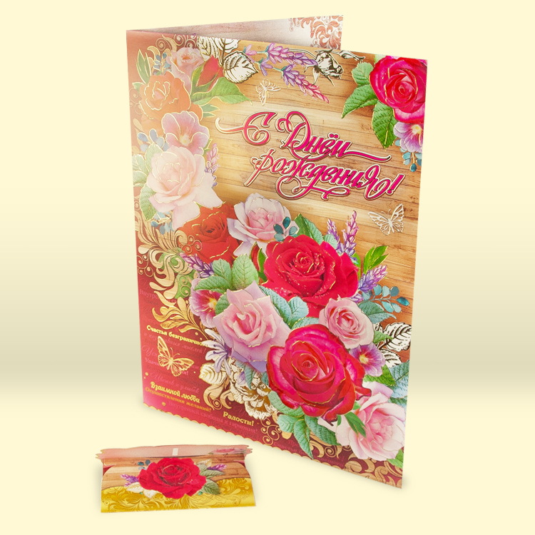С Днем рождения! Плюс конверт для денег. 3Д Цветы