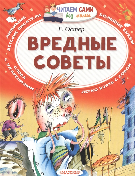 "Вредные советы" Григория Остера - очень полезная книжка. Во-первых, дети смогут сами прочесть её от начала и до конца, ведь в книге большие буквы и все слова с ударениями. Во-вторых, вредные советы на самом деле вовсе не вредные, а очень даже полезные для воспитания мальчиков и девочек.